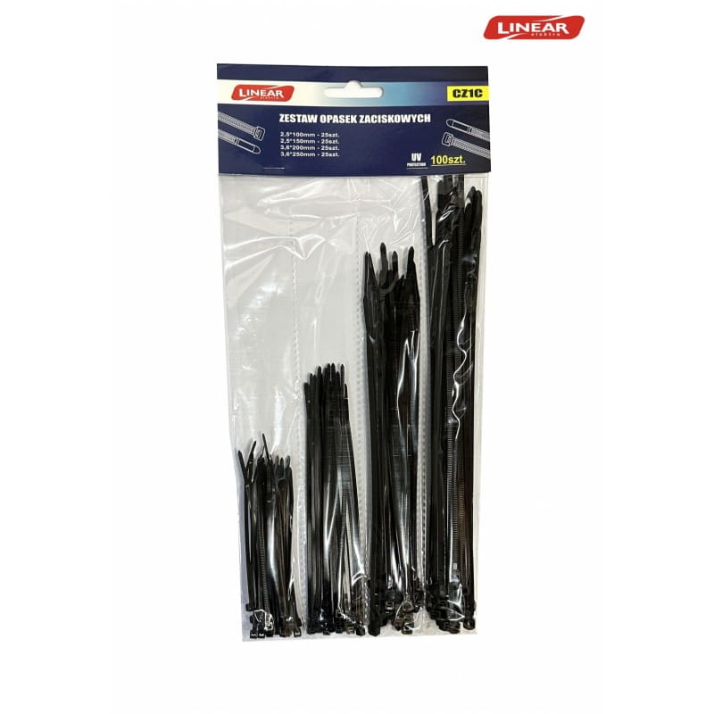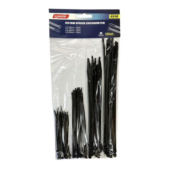 Zestaw opasek zaciskowych 100x2,5; 150x2,5; 200x2,5; 250x2,5 czarne 100szt.