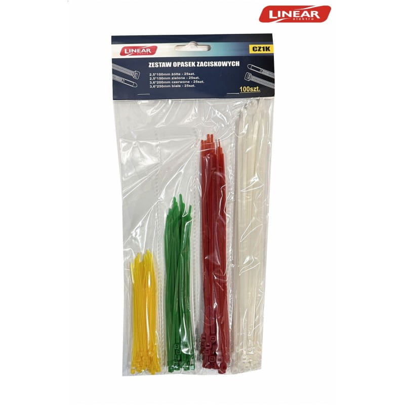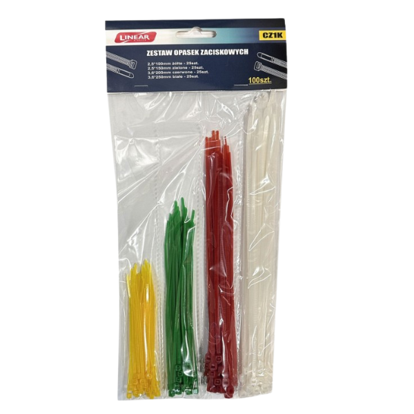 Zestaw opasek zaciskowych 100x2,5; 150x2,5; 200x2,5; 250x2,5 kolorowe 100szt.