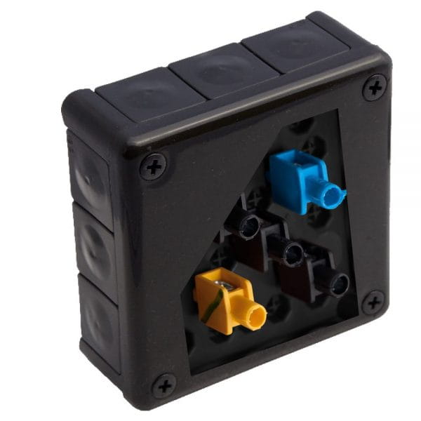 Puszka natynkowa 118x118x46 IP55 12 wlotowa z dławikami gumowymi czarna – 051-55