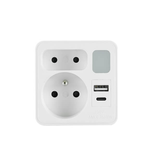 Rozgałęźnik podwójny + ładowarka USB-A, USB-C z lampką nocną - W-72022