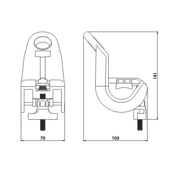 Uchwyt przeznaczony jest do przelotowego zawieszania izolowanych przewodów napowietrznych ASXS(n) na standardowych śrubach hakowych.