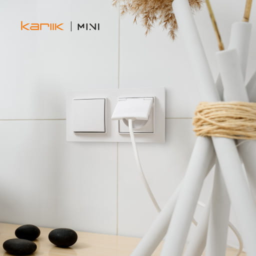 Standardowe gniazdo elektryczne z uziemieniem wyposażone w przesłony torów prądowych z serii MINI, marki Karlik.
