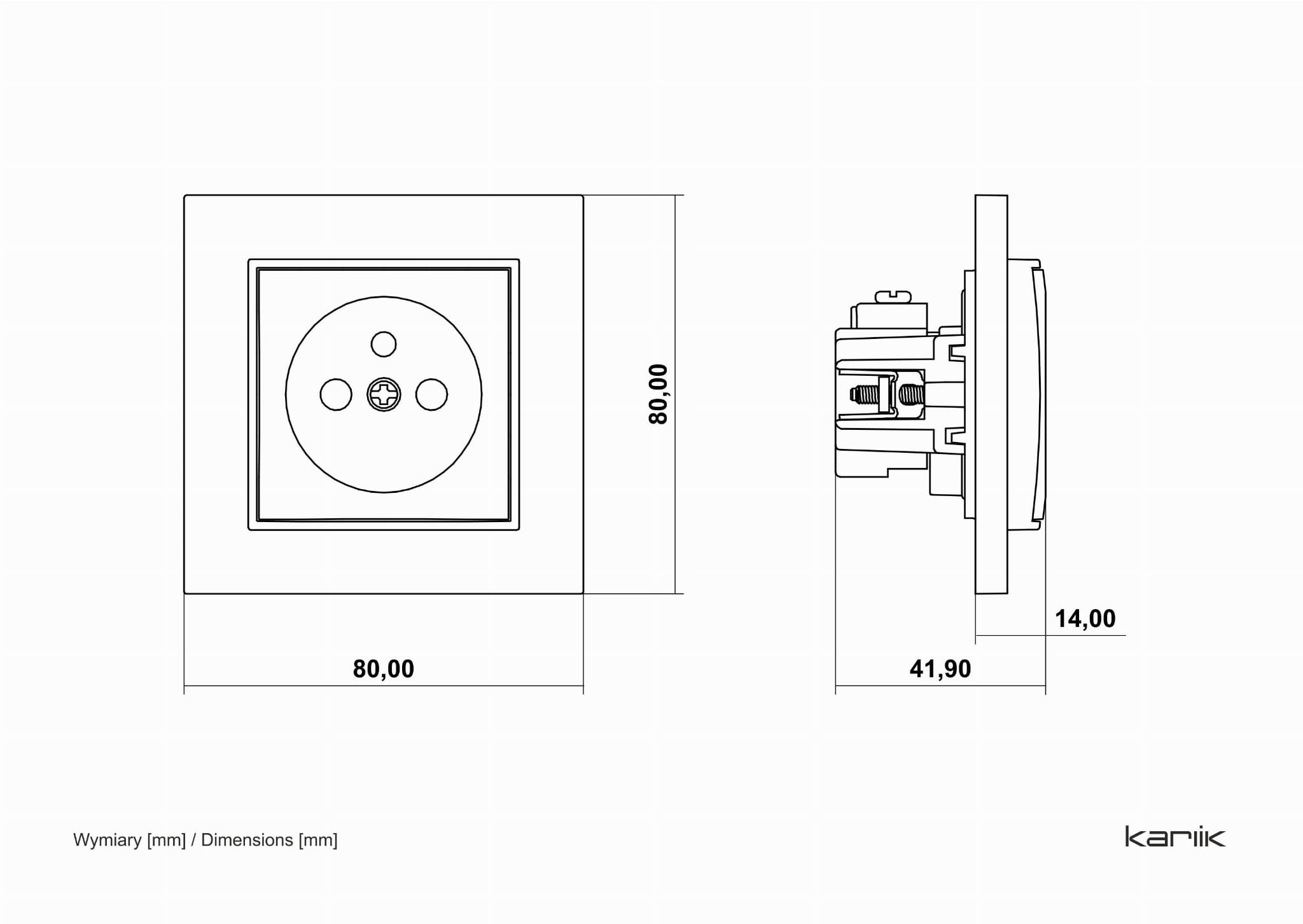 Standardowe gniazdo elektryczne z uziemieniem wyposażone w przesłony torów prądowych z serii MINI, marki Karlik.