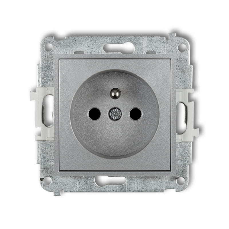 Karlik MINI Gniazdo pojedyncze z uziemieniem srebrny metalik - 7MGP-1ZP