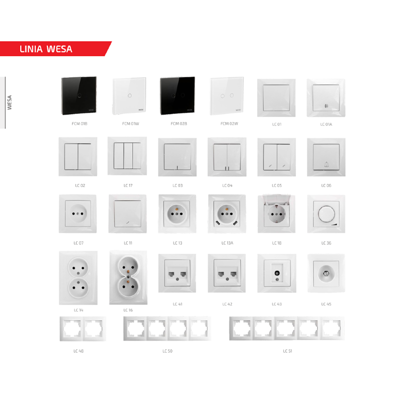 WESA Gniazdo pojedyncze białe z uziemieniem z ramką - VCX LC-13