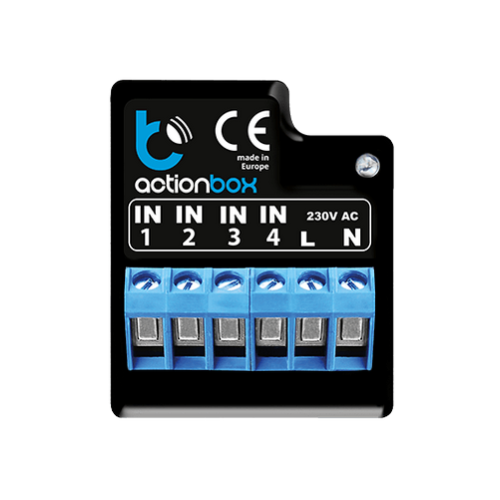 Niewielkie wymiary ActionBox pozwalają na zamknięcie go w puszce podtynkowej. Wykonuje do 30 akcji. Z jednego miejsca można bezprzewodowo sterować wybranymi urządzeniami.