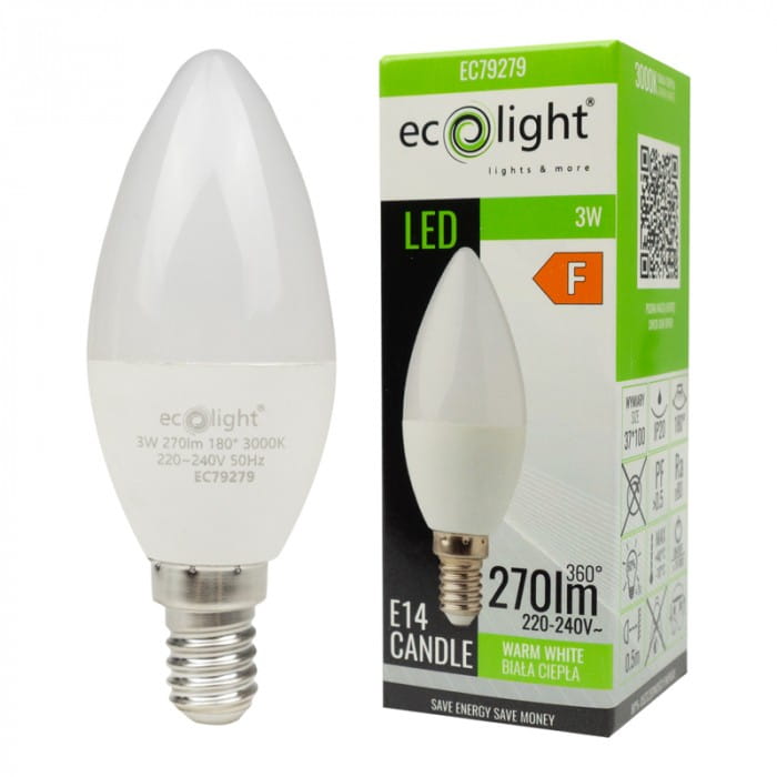 Żarówka LED ŚWIECZKA E14 3W ciepła biała (ww) - Ecolight EC79279